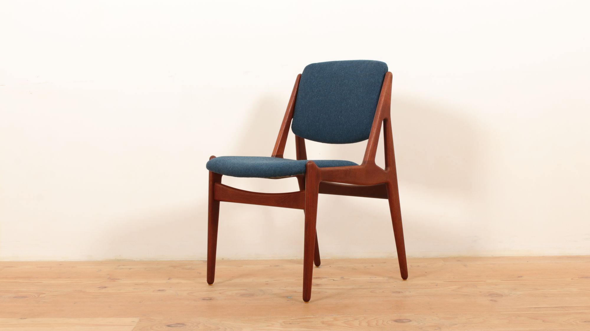 Model Ellen chair由丹麥知名的設計師Arne Vodder於1955年所設計,由Vamo Sønderborg所生產,這款作品相當成功,背部可以360度的上下旋轉,提供使用者變換更多的坐姿都能得到相同支撐回饋的舒適感,有機線條的骨架設計,選用柚木實木在視覺上呈現暖暖的色調,坐墊及背靠包覆的面料,我們選用丹麥相當知名大廠Kvadrat布料Divina Melange進行更替,內部也使用了新的高密度泡棉,而整張的骨架我們也重新清潔保養,在使用上,提供了給您相當乾淨的回饋
