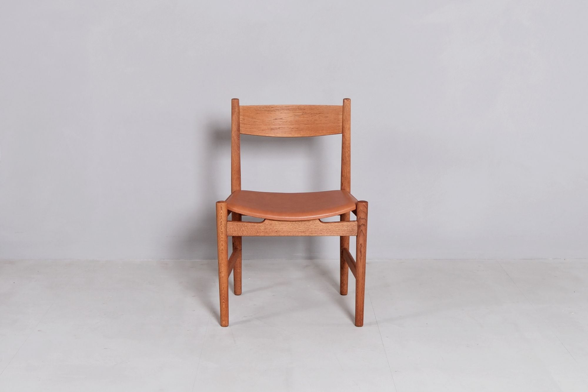 韋格納經典餐椅CH38,1962年設計CH36坐墊使用紙籤材料,隔年又設計出單獨坐墊,其坐墊彎曲型設計漂浮於椅坐上提供更舒適及增添美觀。此物件雖然年代已久但整體狀況相當完整,坐墊已更換為全新的苯染皮革(Aniline Leather),請安心使用。