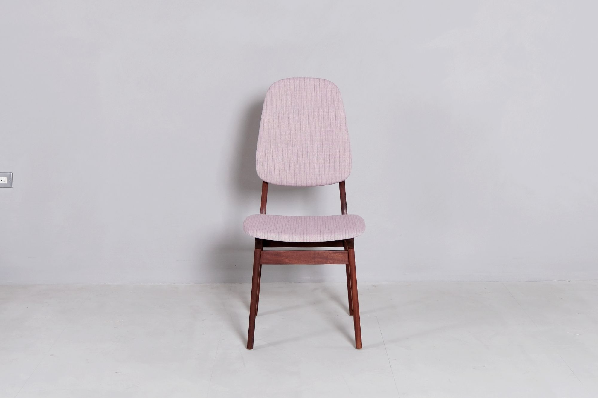 非常優雅迷人的丹麥高背餐椅,懸吊式的椅背非常貼合於人體背部,久坐不累相當舒適。在1960年代的北歐設計餐椅中這並不多見。整體框架椅柚木為主體。雖然有些極細微的使用痕跡,但整體狀況非常良好。